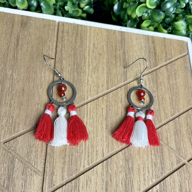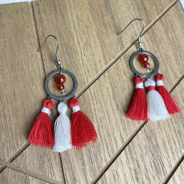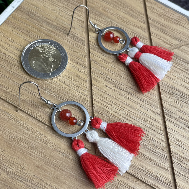 Cette belle paire de boucle d'oreille dans les tons de rouge et blanc, des couleurs qui illumine et réchauffe !