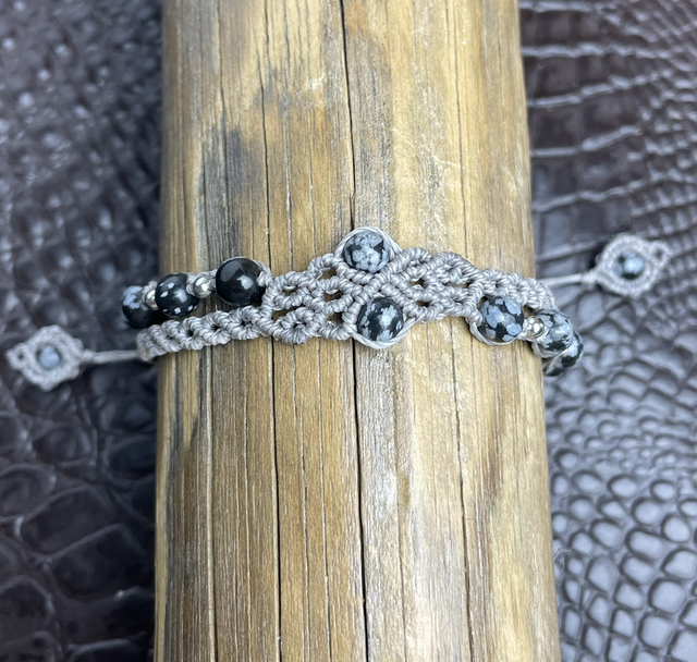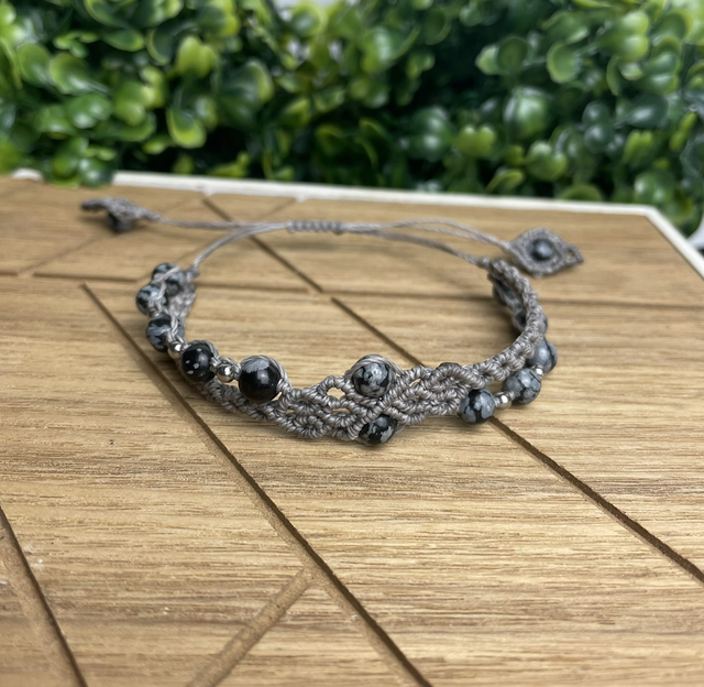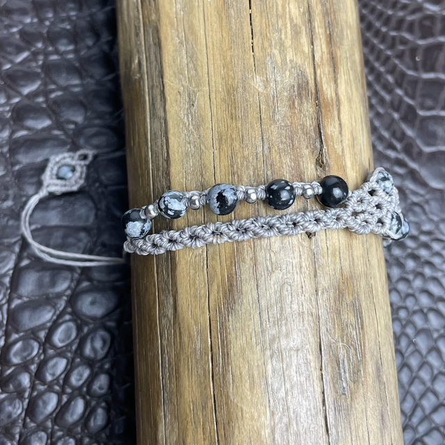 Voici un modèle unique qui s’adaptera à tous les poignets grâce à son noeud coulissant qui rendra ce bracelet facile d’utilisation ! L'obsidienne neige ou étoilée possède de nombreuses vertus : - Pierre d'ancrage, elle permet de profiter du moment présent - Pierre de protection contre les énergies négatives - Très bon soutien pour les personnes hypocondriaques - Permet de se sentir équilibré et apaisé - Consolide la structure osseuse et les ligaments