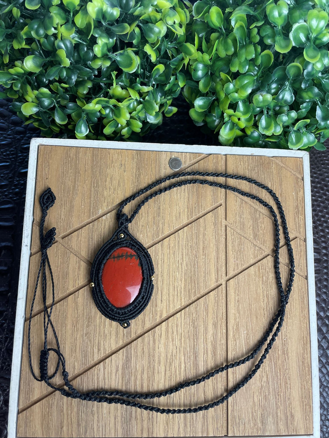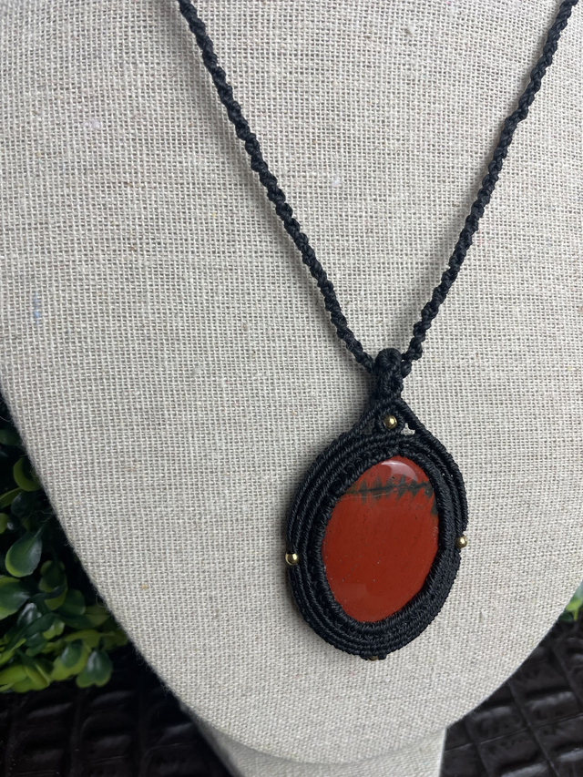 Collier macramé - Jaspe rouge