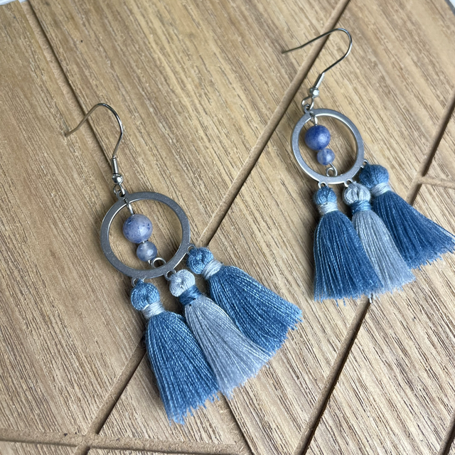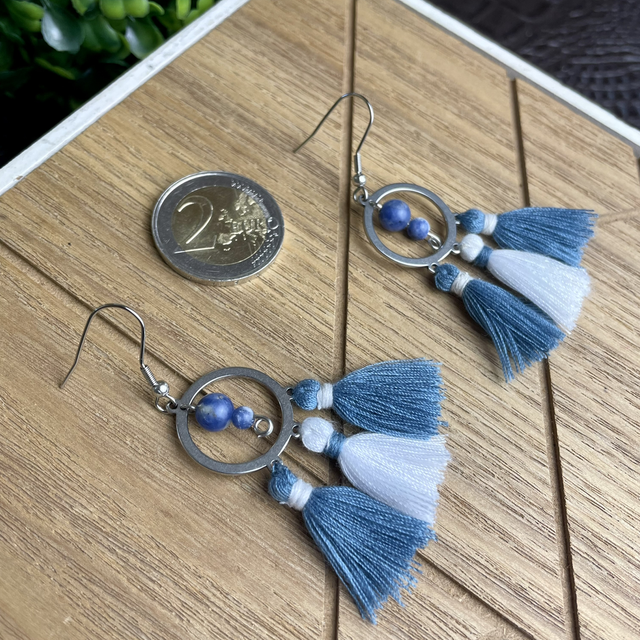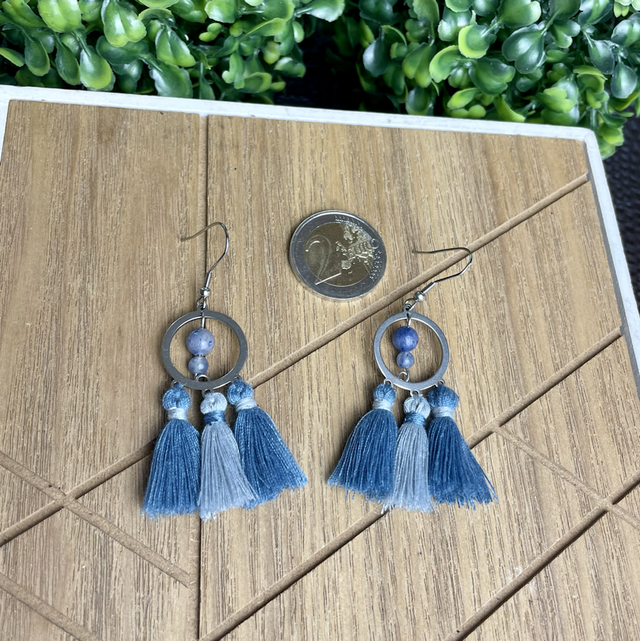 De couleur bleue et grise, cette paire de boucle d'oreille vous apportera de la douceur et du réconfort !